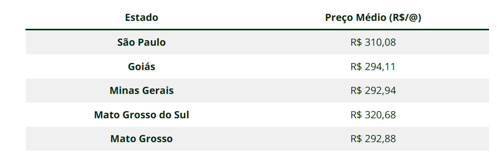 Os valores médios da arroba (à prazo) registrados no dia 7 de outubro foram: